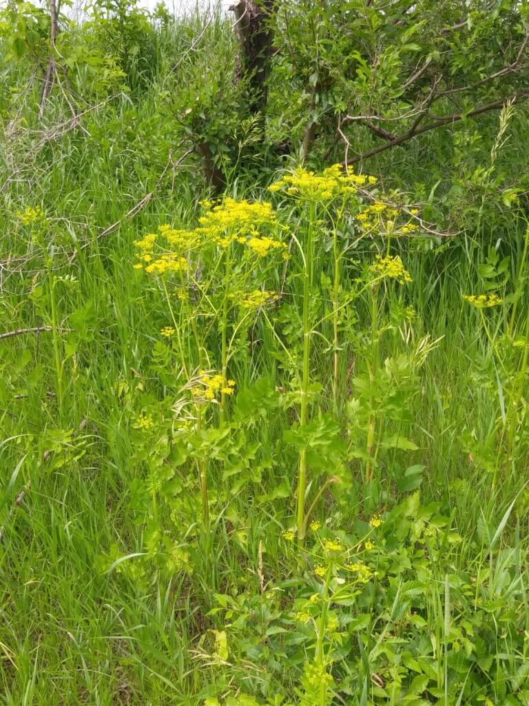 Some plants are labeled noxious because they can harm people, animals, the feed we eat, and nature. One example of a noxoius weed is wild parsnip (Pastinaca sativa). It is an invasive biennial weed hat is beginning to become a problem on roadsides in Mille Lacs County. The “juice” or sap from this plant causes severe burns when it reacts with sunlight on skin. The burns will blister and can leave scars. This plant possess a threat to human safety and therefore needs to be controlled when it is growing in areas where people are likely to come into contact with it.